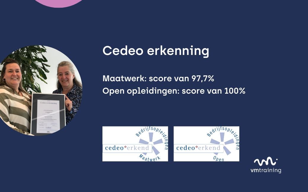 Wil je meer weten over het Cedeo klanttevredenheidsonderzoek, Toekomstbestendige lokale teams, de trainingen die binnenkort starten, kennismaken met onze collega Natascha en nog veel meer? Je ontdekt het in deze nieuwsbrief van VM Training.